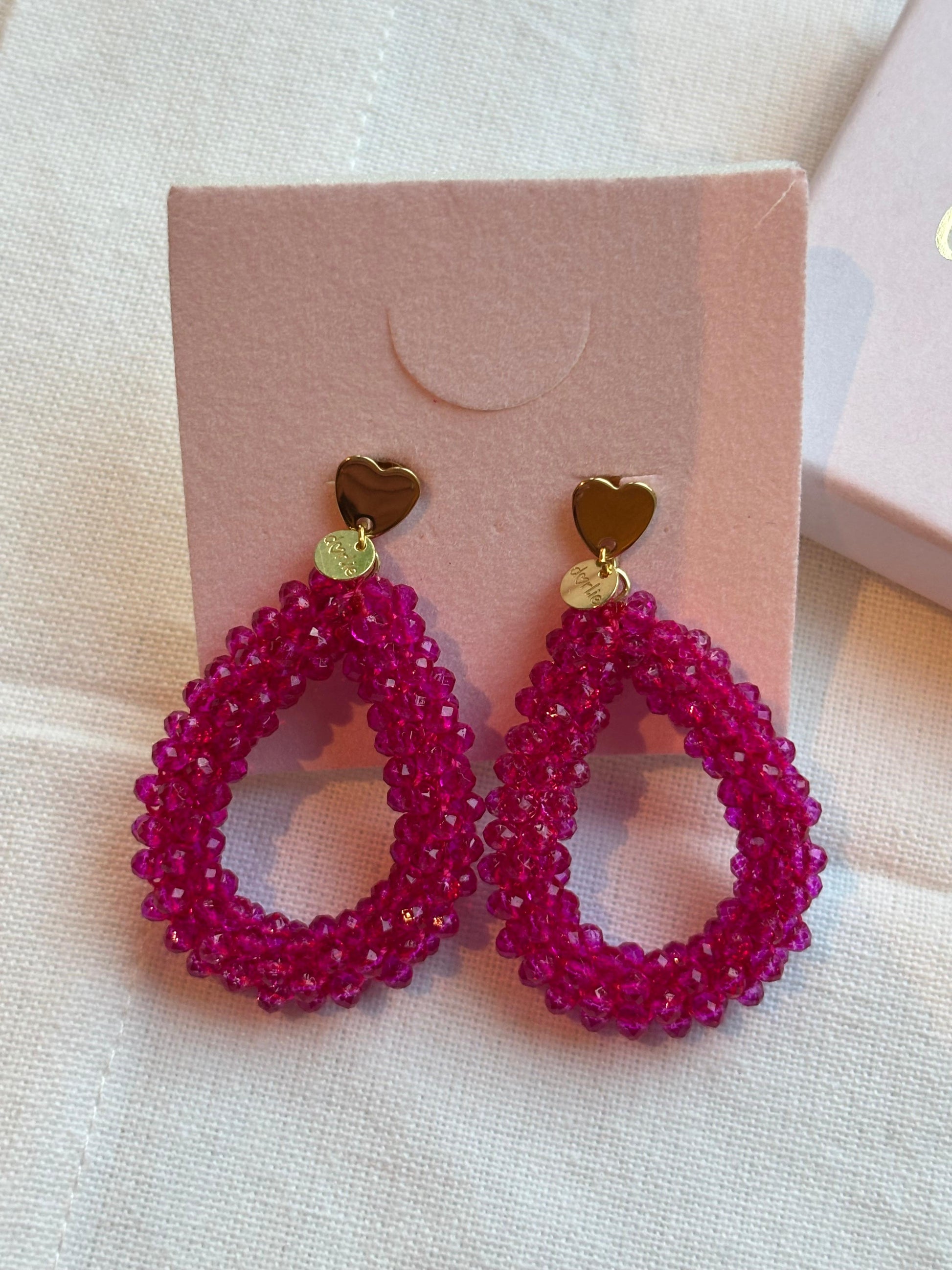 Statement-Ohrringe in glitzerndem pink. Ein echter Hingucker. Ich liebe diese leuchtenden Ohrringe mit dem niedlichen Stecker in Herzform! Immer in hochwertiger dorlie-Geschenkbox.